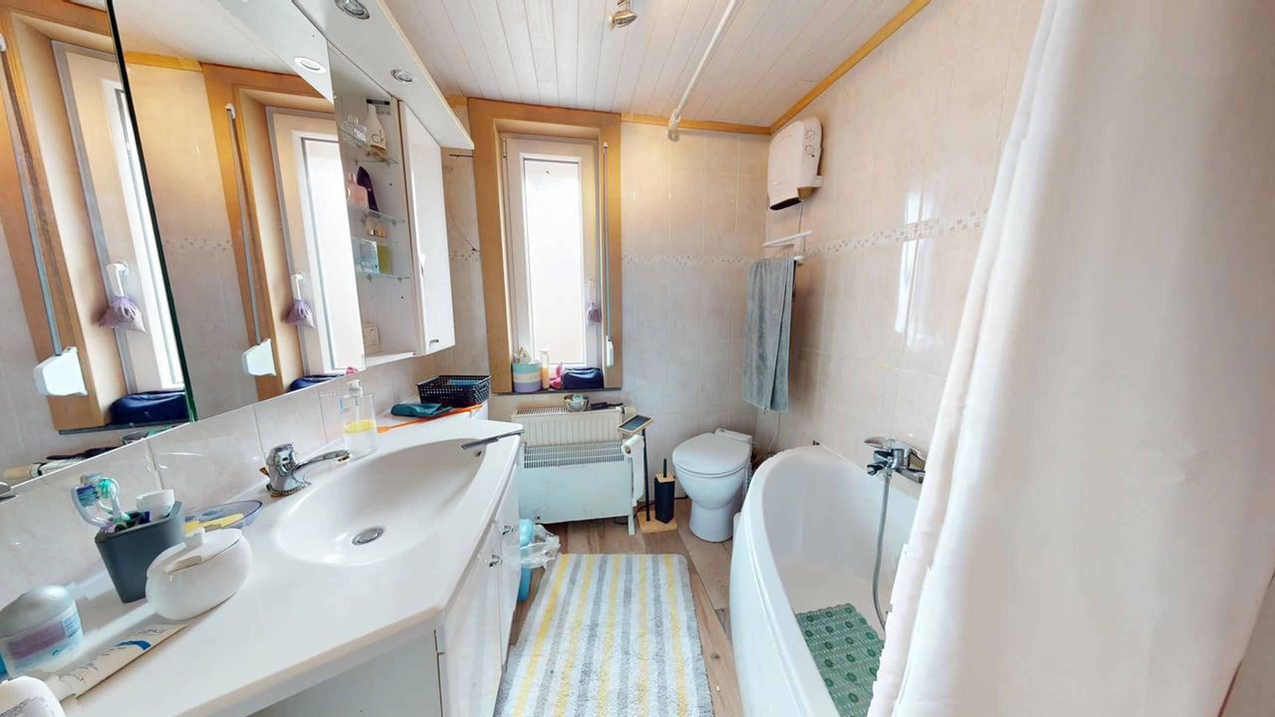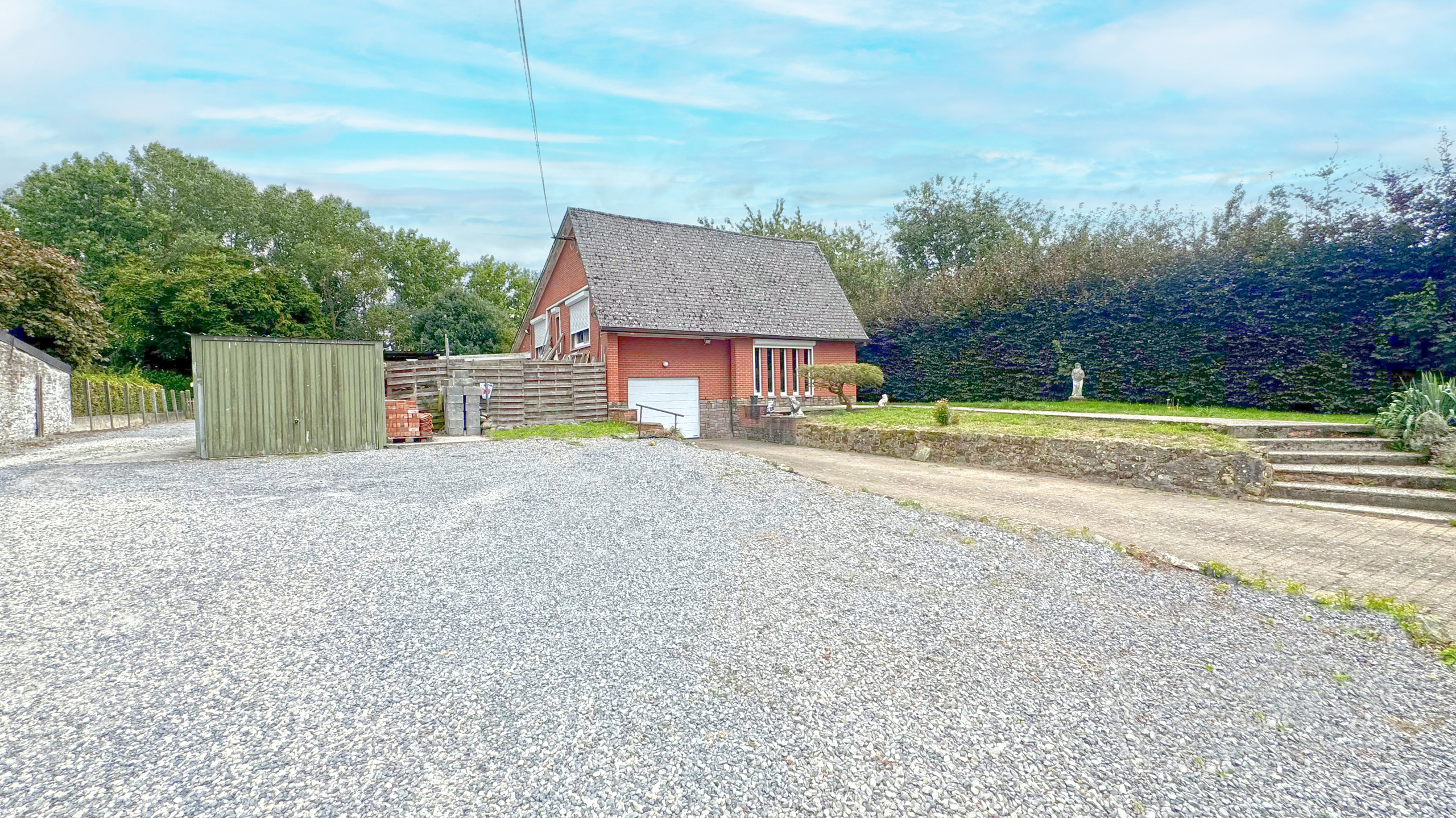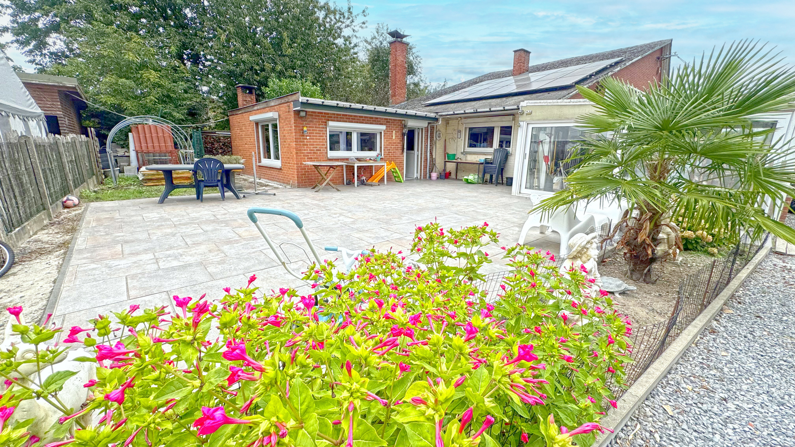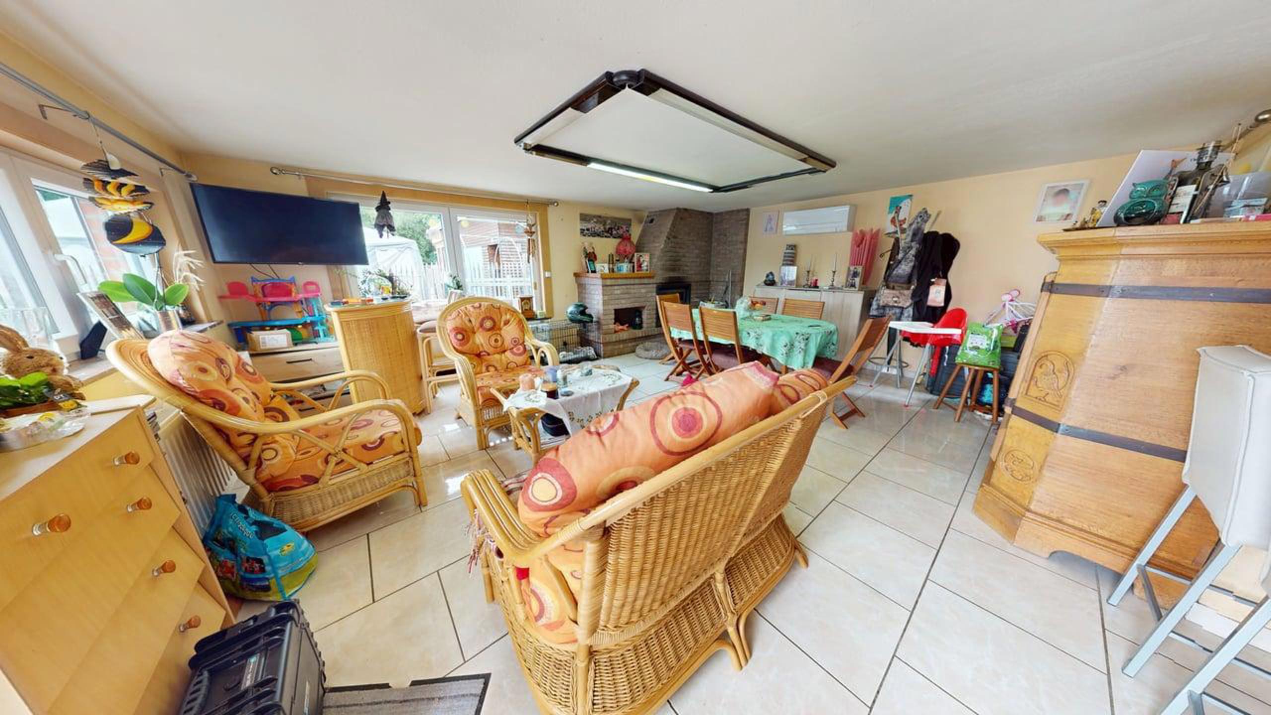 - 2 Séjours, Cuisine équipée, 3 Chambres, Salle de Bains, Buanderie, Véranda, Terrasse, Garages, Parking 191 m2 habitables (source PEB), PEB Cat.D, Pompe a chaleur, Feu au pellet, Chauffage central Mazout