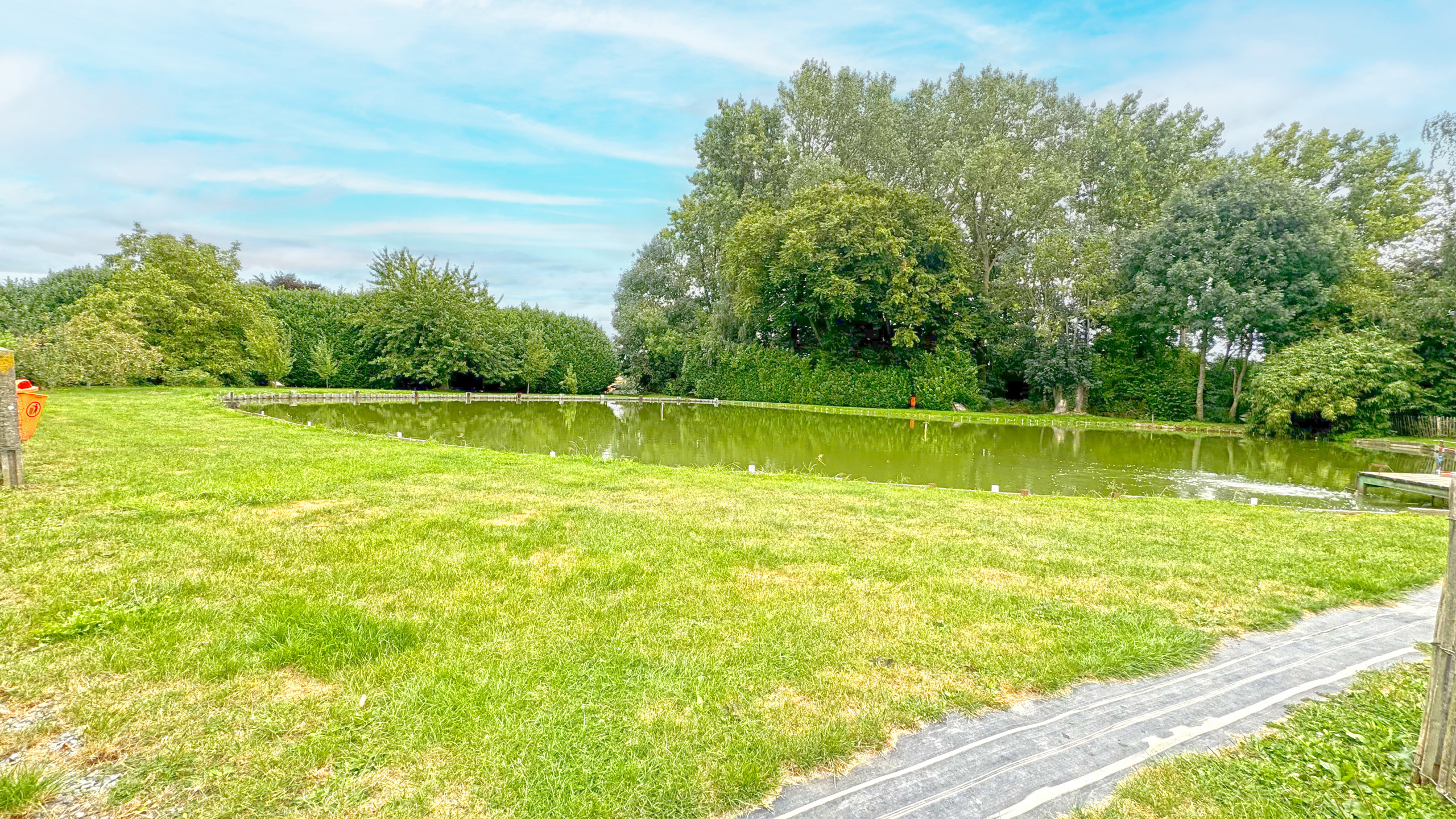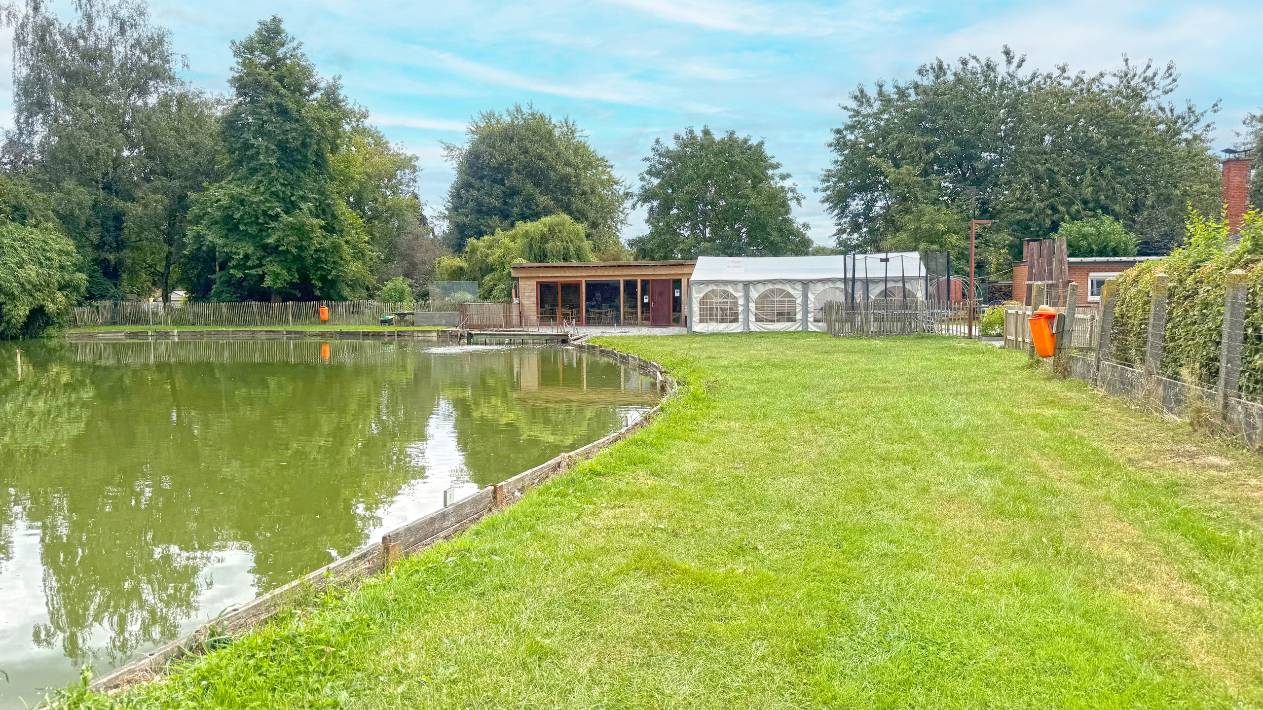 - Etang de pêche à la truite Étang de pêche (d'une siperficie d'environ 1650m2, sont point le plus long 52M, sa largeur d'environ 42 M)
